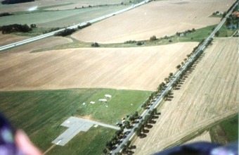 Kumuly se úplně vytratily. Když potřebuji najít stoupák, letím v předkonu a s očima upřenýma pod sebe sleduji každý detail na zemi i ve vzduchu a usilovně přemýšlím, kde zrovna teď může nějaký ten stoupáček být. Naštěstí se mi daří a cesta rychle ubíhá. Ke konci letu šlapu do speedu co to dá, přece jen už je konec srpna a před pátou je už slunce pěkně nízko nad obzorem. Posledních 10 kilometrů se držím ve vzduchu jen silou vůle, termika je zvadlá a potrhaná sílícím JV větrem, připadá mi, že svahuju nad stromy.
