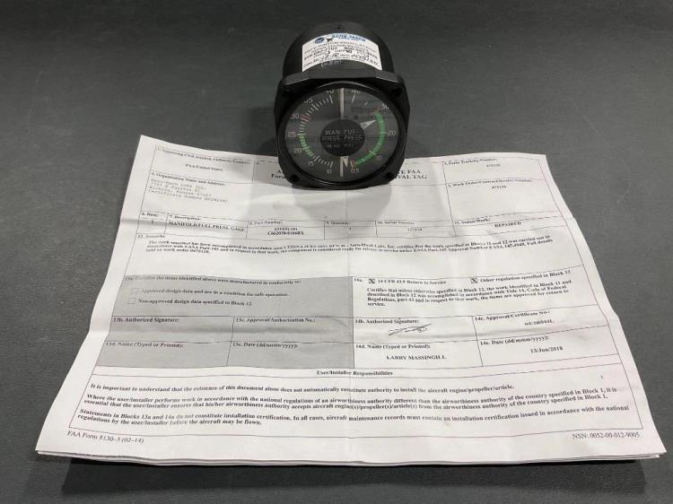 Manifold pressure / Withdrawn fuel flow indicator in working condition. Unit is clean, intact and operating as it should be. Ideal replacement for compatible general aviation aircraft.