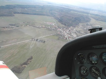 Mezitím jste se už dostali nízko a je potřeba zase trošku nastoupat. Žaludek se pomalu uklidňuje a krev se vrací do hlavy. Orientace je úplně v háji. Koukáte jak vyjevení na to, jak se můžete skoro ztratit pár kilometrů od letiště, kde jinak znáte každou vesničku. Stoupáte mírnou zatáčkou a najednou zjišťujete, že přes všechnu tu hrůzu z neznámých pocitů a strachu z nekonečného prostoru se vám to docela líbilo. Vážně, už se nemůžete dočkat, až zase dostoupáte do začátečnické výšky a začnete nanovo.