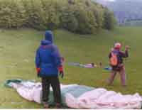 Tu nastal menší zlom mojej kariéry nádejného paraglidistu. Vo všetkej počestnosti sa na štarte preťahujem s protivným bočným vetríkom, precupitám Mišovi cez šnúry a jednu si zapletiem do topánky. S obratnosťou lasičky, snažiac sa z nej vymotať, a pritom ešte aj odštartovať, ocitám sa na zemi v polohe ležmo na boku, s jabĺčkom kolena ešte viac nabok. V tejto romanticky vyzerajúcej polohe som začal uvažovať, či vypustím obsah žalúdka von, alebo či sa zachovám ako chlap a čo som si zožral, to si aj strávim. Zvíťazila chlapská výchova. Obkľúčil ma hlúčik obdivovateľov a dobroprajne sa dohadovali na otázkach liečebného postupu typu: "Dorazíme ho hneď, alebo necháme to radšej na divú zver?"