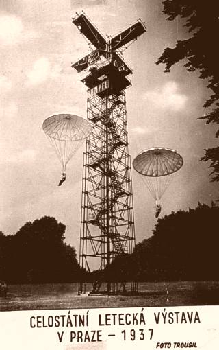 Tehdy totiž stála v Parku v Holešovicích - populárně zvaném Fučíkárna - výcviková věž, která sloužila výcviku parašutistů. Její fotografii nemám a tak pro ilustraci přikládám trošku jinou.