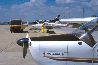 Po ukončení spojení si mě už nikdo nevšímá a tak vypínám magneta vedle rakouského Pipera, který se zrovna chystá přes Mikulov do Vídně. Než si stačím srovnat papíry, už se z Boeingu valí davy lidí do odbavovací haly. Na můj dotaz, zda musím vystát tu strašnou frontu, mě policista posílá na General Aviation, kde zdržuji sám sebe tím, že opět chci razítko. Po deklarování starého spacáku a zaplacení 600 Kč (na odletu jen 400 Kč) jsem odbaven a telefonuji domů, že jsem v pořádku. Pomalu se vracím zpátky k Echu a srovnávám si zážitky v hlavě. Nabízený benzín z autíčka Shell s úsměvem odmítám. Natural určitě nerozváží. Poslouchám nový ATIS a po potvrzení odletového povolení znovu vystupuji z Echa, abych si sám vykopnul klín pod předním podvozkem. Potom zase pojíždím po C jako Charlie na dráhu 10 a odlétám pravou zatáčkou nad výstupní bod Říčany odkud pokračuji do Křižanova. Tam chci přistát a najíst se. Chvíli před vstupem do AFIS zóny se pokouším navázat spojení, protože slyším, jak se baví se svými větroni, ale mne buď neslyší nebo ignorují. Možnost přímého přiblížení ze směru tedy nepřichází v úvahu a musím nad letiště. Celou dobu naslepo vysílám svoji polohu, vybírám si dráhu a přistávám.