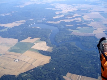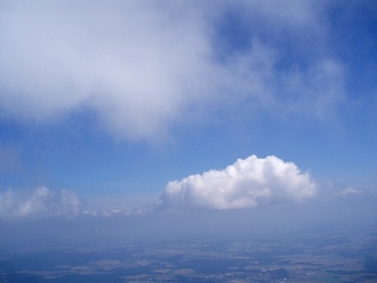 Po cestě už byly nalajnované krásné řady. Někdy to bylo trošku divočejší, takže jsem občas šlapal speed jen na půl, ale i tak to letělo po větru 60 km/h. Občas mě překvapil nějaký mráček, který se sám rozpadl, ale většinou se dalo někde dál sebrat v docela silně rozbité termice. Ale zaplať pánbůh za ni a za hodné éro. Výšky základem byly čím dál tím lepší a přede mnou už se rýsovala Javořice. Tam už to znám, tam jsem už taky párkrát vyhnil. Takže jsem radši ještě třikrát dobíral výšku a bez problémů dolítl kumulek přímo nad vrcholem. Základny už se dostávaly skoro do 2500 metrů nadmořských. Přelítl jsem Telč. Koukal jsem a hledal, jestli nelítá někdo z Dačických, ale nikde nikdo.