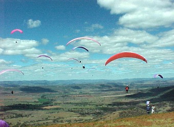 Po dosažení hřebínku vytáčíme všichni silné stoupání a naše skupina se rozděluje. Tomáš s jedním Australanem míří do cíle přes město, já si vybírám přímější trasu rovnou na cíl. Nakonec se všichni potkáváme asi 6km před cílem a spolu s dalšími dolétáváme s velkou rezervou výšky. Juraj Kleja samozřejmě taky.