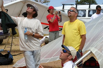 Můj den!!! Startuju první a spolu se mnou Paris, Curt a Antoine. To bylo dokonale správné rozhodnutí. Jakmile jsme vylétli do roviny směrem k prvnímu otočnému bodu, podíval jsem se zpátky a nad celou oblastí kolem startu se už rozprostíral stín vysoké cirrovité oblačnosti, takže později startující piloti už měli potíže se slabými podmínkami a proto byli pomalejší.