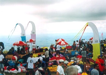 Na poslední otočný bod se po těžkém boji dostáváme spolu s Michalem Orolinem na špici vedoucí osmičlenné skupiny. Do cíle už odtud chybí jenom 7 kilometrů. Brazilský bůh termiky, beztak ještě připitý z divokých karnevalových nocí ale řádně míchá karty. Ani výška základny mi nestačí na dosažení cíle, sedám 2.5km před ním a vzpomínám na podobný zážitek z loňského závodu na Straníku. První je nakonec v cíli padák, který měl na otočňáku nejmenší výšku a přilétl k němu jako poslední.