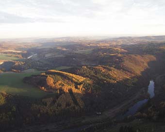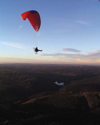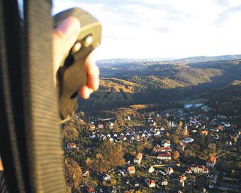 Listopadové odpoledne se pozvolna chýlilo a když jsem si udělal malou přestávku od práce na časopísku a vyhlédl z okna, dospěl jsem ke svému údivu, že venku je takové to správné odpoledne k vrtulovému výletu. Zavolal jsem kamáradovi Petrovi do sousedního městečka a za půl hodiny jsme už oba uháněli z Kladna směrem na Křivoklát, krosny a padáky nacpané v autě vzadu. Panovalo téměř bezvětří, na obloze vrstevnatá oblačnost, pokrývající sotva polovinu nebe. Dohlednost byla tak dobrá, že když jsme zaparkovali auto na velké louce nad Křivoklátem, viděli jsme v dálce na severozápadě ostrý pás Krušných hor. Vzduch voněl tlejícím listím a nás obklopovala atmosféra přírodního ukládání k zimnímu odpočinku. Takový ten typický podzimní klid. S Petrem jsme si před nedávnem říkali, že je sice pěkné, když v této již netermické sezóně nemusíme znuděně svahovat a už vůbec ne slétávat kopečky, avšak že i s hnacím silákem za zády je místní poletování kolem jednoho místa poměrně fádní. Začali jsme tedy vymýšlet různé přelety, plánovat všelijaké několikadenní čundry s partou kámošů na příští léto a i kratší podzimní přelety. Na dnešek jsme vymysleli asi dvacetikilometrovou trasu z Křivoklátu na letiště kladenského aeroklubu. Tam jsme nejprve zatelefonovali a zeptali se, zda tam můžeme přiletět. "Jasně, přiletět můžete, provoz nemáme," řekl mi do telefonu můj někdejší instruktor z pokračovacího plachtařského výcviku, s nímž jsem se v poslední době setkal na několika leteckých dnech a který už měl krosnu znalecky omrknutou.