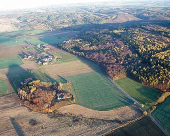 Otočili jsme a ve výšce 700m MSL jsme mířili na Kladno, které bylo velice dobře viditelné. Krajina byla kontrastně, ale poměrně nevhodně osvětlená - tam, kam dopadalo sluneční světlo, byla červenooranžová, jinde, kde se již rozprostíral stín, měla modrý nádech od oblohy. V duchu jsem přemítal, jak se asi budou fotky zpracovávat a zda se mi podaří vyladit barvy správně.