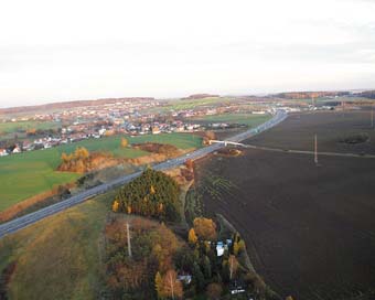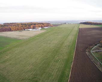 Skončil jsem své úvahy, neboť jsme se s Petrem přiblížili do míst, kde je spodní hranice TMA Praha ve výšce 300m nad zemí. Trochu jsme vyklesali a z menší výšky jsem potom fotil Bratronice, odkud jsme museli letět více na sever, protože sem zasahuje ruzyňské CTR. Dolétli jsme do prostoru západně od letiště Kladno a měli možnost si důkladně prohlédnout karlovarskou čtyřproudovku. Letiště Aeroklubu Kladno bylo přímo před námi a bylo vidět, že tam pojíždí nějaké letadlo. To se vzápětí ocitlo na dráze a odstartovalo, takže jsme s Petrem chvíli vyčkávali mimo osu dráhy a jakmile odlétlo pryč, zamířili jsme nad dráhu, sklesali až do výšky 20m a po zakroužení jsme, sledováni skupinkou místních pilotů, přistáli na dráze v úrovni hangárů. Místní nás přátelsky zdravili a živě se zajímali o naše stroje. Zatímco jsme balili padáky, aby nenavlhly ve večerní rose, vyřítil se náčelník a s předstíraným hněvem nám vytýkal, že jsme se po přistání nepřišli ohlásit. Bylo však vidět, že se přišel podívat ze zvědavosti na dva blázny a pozdravit.