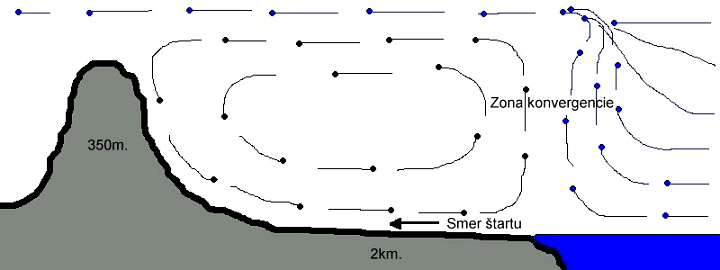 V takéto okamihy je mi ľúto, že nikto nie je vedľa mňa, s kým by sa dalo o taký zážitok podeliť. Postupne sa presúvam k moru a zrazu nad brehom chytám silný stupak s dosť ostrou turbulenciou. Pri snahe sa vrátiť na pevninu turbulencia sa zosilňuje a preto som nútený odísť asi 2 km od pevniny nad more.