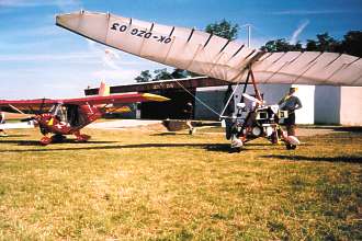 Nyní už máme stroje motorové - Petr dvoumístné motorové rogallo OK DZG 03 s podvozkem DOLPHIN TOMI III., s křídlem Petra Máry MW 155, čtyřdobým motorem Verner SVS-1400 a třílistou celokompozitovou vrtulí VHF 1800. Ruda létá s hornoplošníkem PEGAS vlastní konstrukce OK AUA 07, který postavili a provozují společně s bratrem Radkem. Ultralight Pegas je osazen jednokarburátorovým motorem Rotax 503, který přes reduktor pohání třílistou stavitelnou vrtuli Junkers.