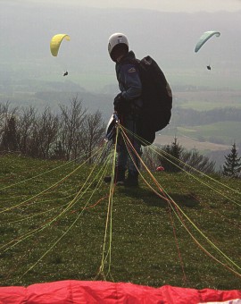 Orešany, júl. Vybaľujem si výstroj z auta, podchvíľou sledujem štart. Spoza stromov vylieta Poník, ale ostáva sa motať nad štartom. Tam to býva najviac rozbité, prečo neodletí preč. Chystám sa ďalej. Zrazu ma niečo prinúti pozrieť hore, pohľad priklincujem na padák. Fronstall, asymetrika, pád v negatívke, zmizol mi za stromami. Rýchlo kričím do vysielačky, viem že ďalší chalani šľapú už skoro pri vrchole, nech všetko zahodia, nech tam bežia. O chvíľu sa ozývajú, že je v poriadku, trochu otrasený. Keď šľapem do kopca ja, stretávam nešťastníka, schádza dolu pešo.