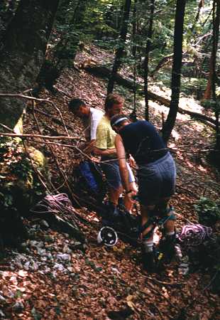 Na místo jsme dojeli časně ráno, za večerníčkového počasí (...za mlhou hustou tak, že by se dala krájet...) a vlastně téměř okamžitě jsme po dlouhém celonočním přesunu usnuli. Probudilo mě šílený vedro. Po ranní mlze nebylo ani památky a stín člověk našel jen stěží. Šílený nápad plavat v řece Soče, která stéká z hor a jejíž teplota spíš než tomu, že jsme přijeli na jih, nasvědčovala, že lední medvědi jsou nedaleko, jsme během pobytu dovedli k takové dokonalosti, že jsme byli schopní přeplavat ji tam a zpátky. (Nebudu zbytečně zdůrazňovat, že dělat v té ledárně tempa byla jediná možnost jak nezmrznout!).