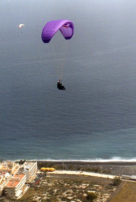Původně paragliding ani nechtěl být tím, čím je. To jen francouzští parašutisté v dobách, kdy se už běžně skákalo z letadla na seskokových padácích typu křídlo, vymysleli, že takový padák by se dal položit rozvinutý na svah a pak že by se eventuálně mohlo podařit rozběhem z prudkého kopce vznést do vzduchu a uskutečnit tak vlastně seskok bez pomoci letadla. Tudíž značně levně. A vida - ono to šlo!! Ve Francii v alpských regionech bylo vhodných svahů dost a koncem 70. let tak vznikl základ budoucího paraglidingu. Nápad vylézt na kopec pěšky a cestu dolů si ušetřit seskokem se zalíbil i horolezcům a během krátké doby se z vlastnictví padáku stala mánie. Padáky byly relativně malé, skladné, jako postroje se dal použít horolezecký úvazek. Někde vysoko na alpínských loukách stačilo vyndat nenápadný balík, rozvinout jej, protřepat šňůry, vyhnat myši z padákových komor a navléci se do úvazu. Celé to zabralo nějakých pět minut, což je mimochodem vlastnost, která zůstala dodneška, i když padáky vypadají úplně jinak, úvazy nahradily robustní postroje s ochrannými prvky a dnešní pilot má kolem sebe hromadu navigačních pomůcek, mapy, přístroje a další cetky. Ale tehdy v těch pionýrských dobách bychom nemohli nazvat průkopníky paraglidingu jinak, než absolutními blázny, na jejichž úspěších i nezdarech, dobrých i špatných zážitcích, ba i smrtelných úrazech stojí dnešní zkušenosti moderního paraglidingu. Padák byl opravdu padák - po divokém vzletu mezi skálami snad opravdu víc klesal, než letěl kupředu. Anebo - ať nepřeháním - mohl z kilometrového převýšení doklouzat tak kolem tří kilometrů dopředu. Avšak namísto několikahodinového slézání z hor jste mohli být dole za pár minut a v nejbližší hospůdce pak se shovívavým úsměvem vyčkávat na vaše méně šťastné přátele, kteří padák neměli a museli pěšky.