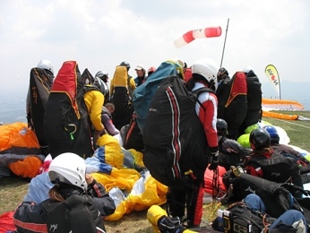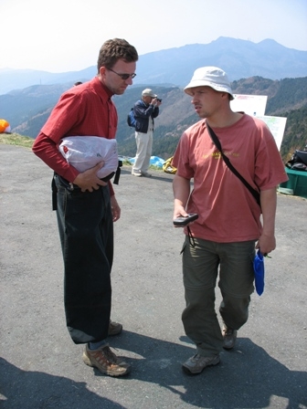 Na přistávačce je opět veselo. Tíhu vyhnívky jeden japonský závodník neunesl a válí se tu smíchy na zemi. Celých sedm minut dolů!!! Peťule čtyři a Renča dokonce tři minuty. Zatímco zevlujeme, Robert Bernát je stále ve spojení na megadlouhé vysílačce s Rafalem Luckoszem. Partička je už na 40. kilometru. Většině spadly koutky. Pro uznání tasku je potřeba, aby ze 120 pilotů 30 závodníků uletělo minimální vzdálenost 30 km. Utěšujeme se slovy: "Lepší je si zkazit náladu na začátku sezóny, pak už není co zhoršit, jen vylepšovat."