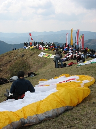 Ve dvě odpoledne je vymeteno, kumuly naskákané a většina se hrne opět do vzduchu. Šestkové šprajcy, lať jak prase. To snad není možné, chytají se za hlavu. Peťule si jde pouštět vrtulníček a my s Pacošem vyrážíme pěšky na nejvyšší vrchol zdejšího hřebene, horu Tsukuba. Kolem osmé večer je partička ze svozu zpátky.