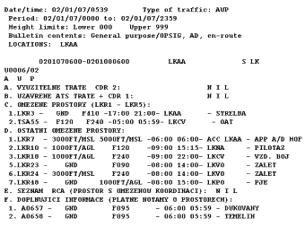 Máme tedy počasí i NOTAMy, ale stále nevíme nic o tom, jaké omezené prostory nám mohou bránit v rozletu. Tady je situace poněkud komplikovanější.