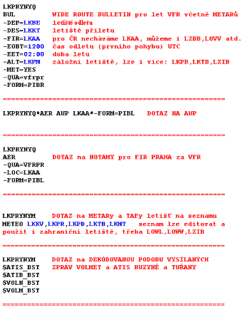 Vedle AUP si můžeme stejným způsobem vyžádat NOTAMy, METARy a TAFy a to i zahraniční. Podrobný návod například vysvětluje, jaký kód zvolit, abychom dostali pouze informace pro lety VFR, nebo jak si požádat o tzv. Route Bulletin.