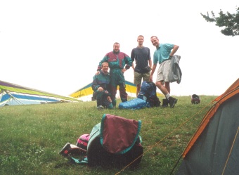 Zatímco balíme tábořiště, přichází na start skupinka rogalistů. Není divu, v takhle krásný den. Zpráva, kterou přinášejí, ale moc krásná není: na Kovk se přesouvá z Krvavce dnešní kolo Mistrovství Slovenie v závěsném létání. Během hodinky se dostaví šedesátka závodníků. Mohli bychom do té doby laskavě odstartovat? To nás povzbudí k ještě horlivějšímu balení stanů a vybalování padáků. Stejně to ale nestíháme.