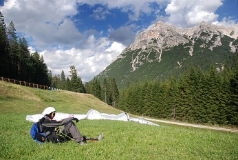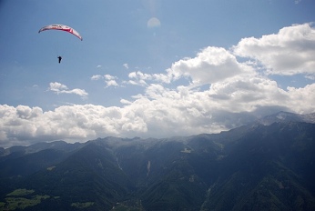 Vezeme s sebou asi osm párů bot, ale prakticky střídáme jen dvoje, podobně je tomu i u oblečení. Dnes jsme startovali z Strelapassu nad Davosem a Honza dolétl asi 40 kilometrů před Oberalppass, do kterého bude muset pravděpodobně do rána dojít. Byl to dost neobvyklý start ze skalního žebra na boční vítr. Většina prolétala sedlem do závětří na nasluněnou stranu, kde, ač se to na první pohled zdá nelogické, ve výsledku nastoupala pár set metrů nad start, aby se mohli pustit proti větru na další hřebeny. Při přeletu města Chur se střílelo v lomu natolik, že to pořádně zacloumalo i padákem.